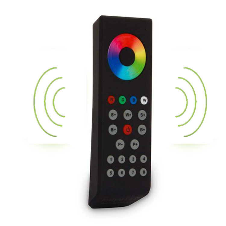 This is a handled wireless device that operates electronic equipment that uses radio frequency transmission. The advantage of working with an RF controller is that you do not need to aim it at your LED Lighting device for it to work.