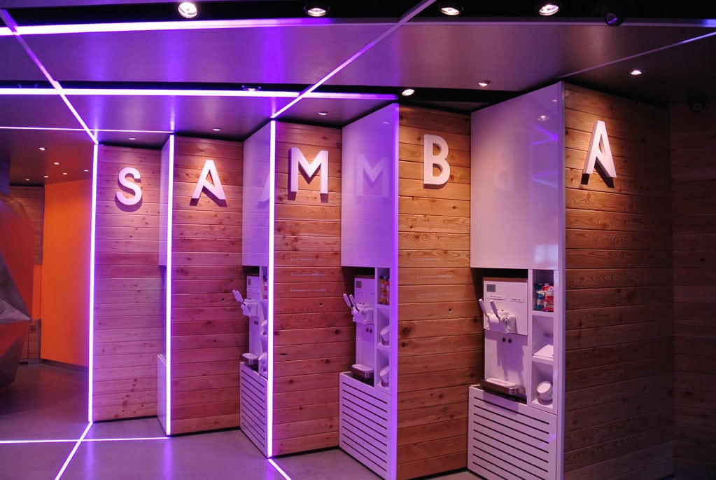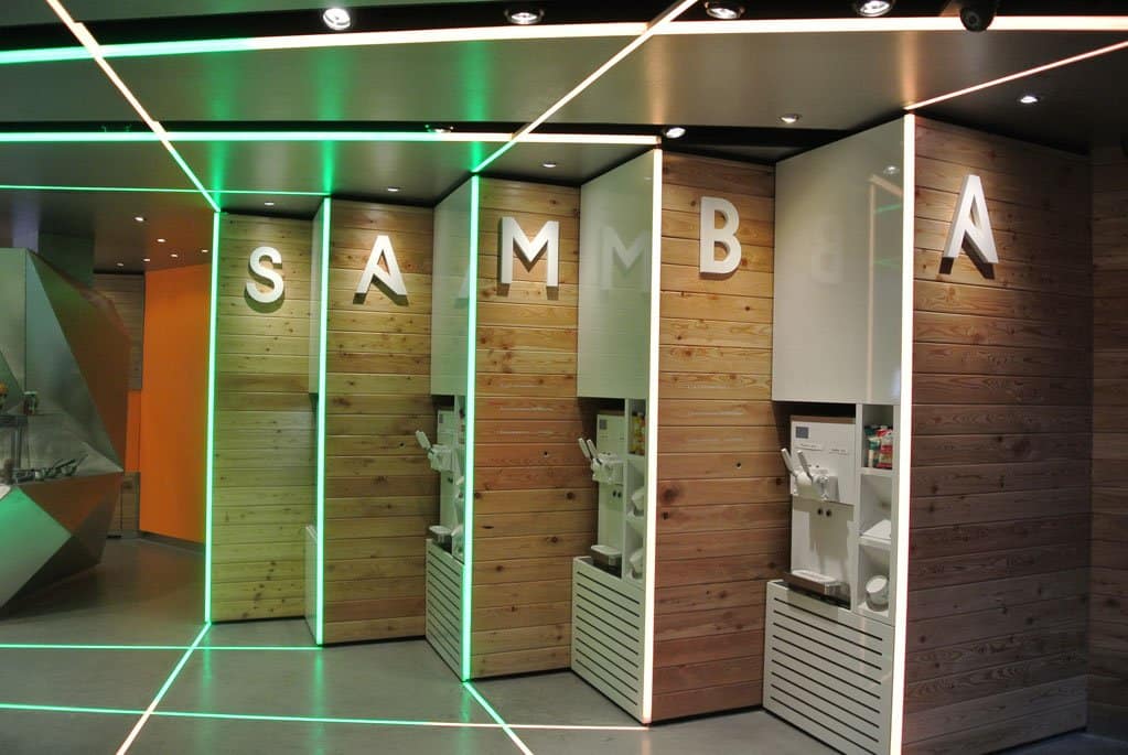 In 2013 Samba swirl underwent a lengthy re-brand to achieve a look that will take Samba Swirl into its next phase of growth. The Camden store is the new flagship store completed with a new design with special features such as colour changing LED lighting throughout, including the floors, wall and ceilings.