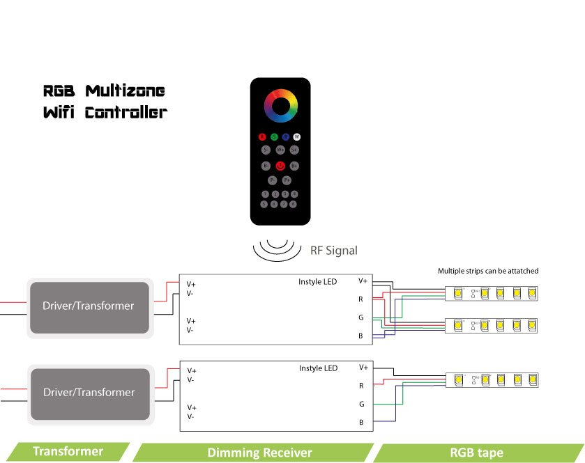 Radio Frequency (RF) | Wifi option 8 zones | Works with RGB & RGBW LEDs
