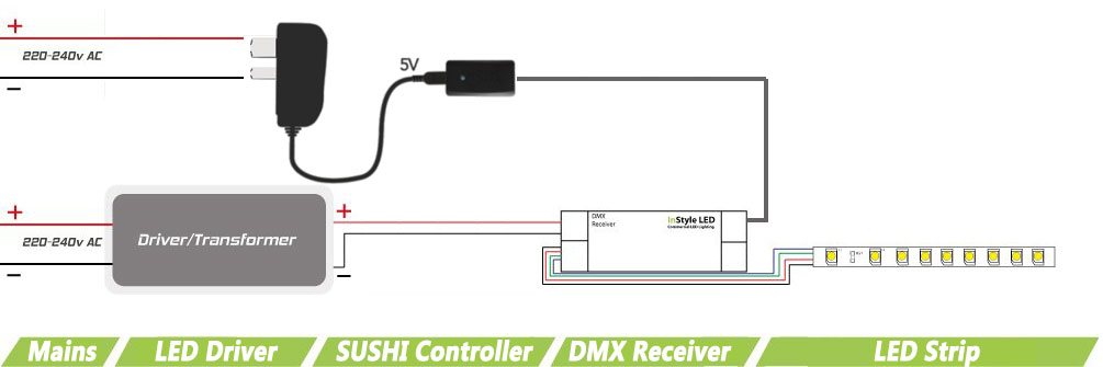SUSHI channels/scenes can be programmed by ESA (‘Easy Standalone’) software, and loaded via the SUSHI’s USB port. You can program your own SUSHI or, if you prefer, INSTYLE can offer an in-house programming service to design and load colours, scenes and effects to meet your requirements. See our Nicolaudie Advanced DMX page for more details. Note: bespoke programming will not be available for next day delivery!
