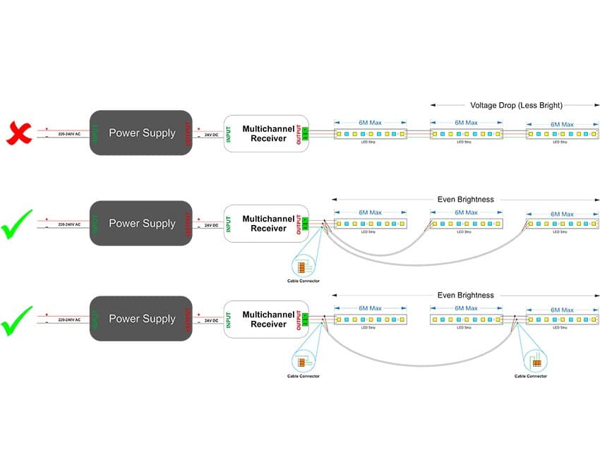 - Heatsink – applying the LED strip onto or into an LED profile will ensure that any heat created will dissipate, which in turn will benefit the LEDs longevity.