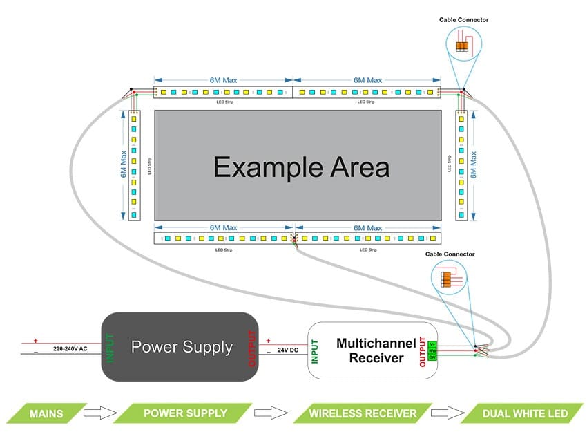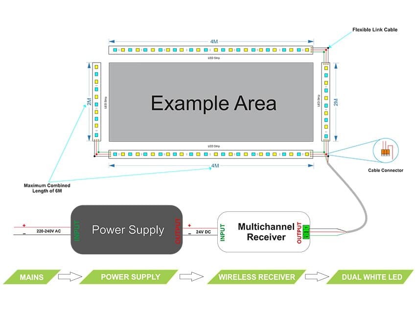 Being tunable white (CCT) means you can seamlessly adjust the colour temperature from warm white (2700k) to cool white (6500k) and anything in between! Perfect for creating dynamic lighting moods in both residential and commercial spaces, these strips deliver high quality, flicker free illumination for any setting.