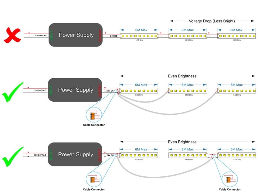 If you’ve ordered your LED tapes cut to custom lengths from us, with all the starter-leads and flexible leads for corners that your project requires, then you’ve most likely got everything you need already! But for some installations, the following accessories may prove useful: