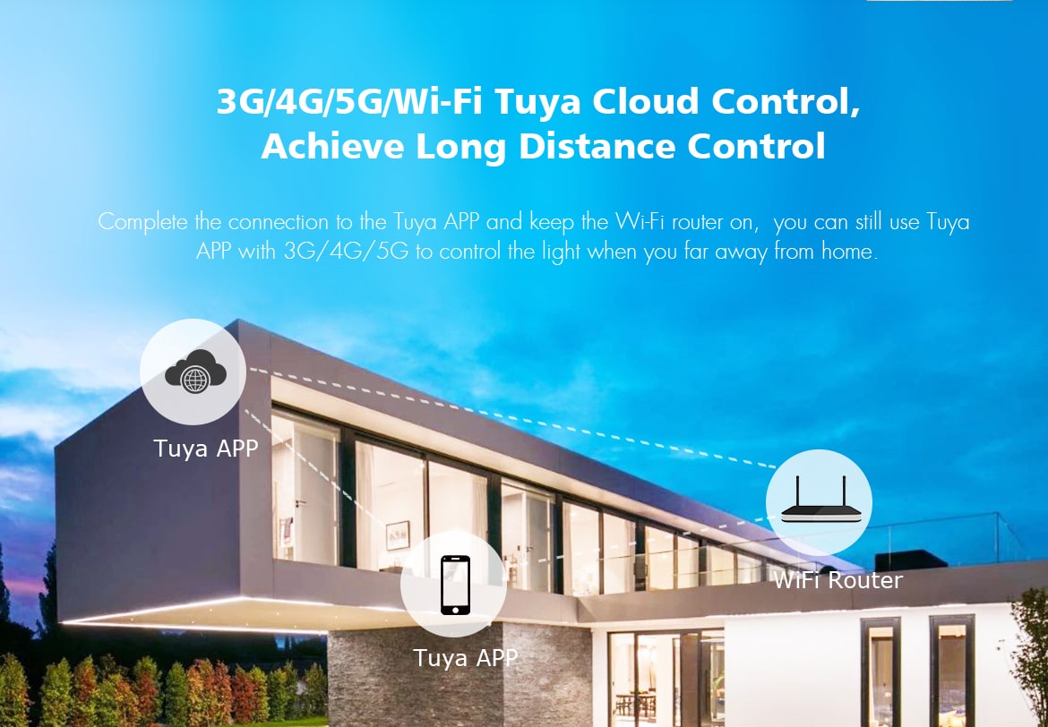 The controller can be controlled using the Tuya smart app, which allows precise adjustments for color settings, brightness levels, delays, timers, scene configurations, and even music synchronization. It can also be voice-controlled when integrated with Amazon Echo. For added convenience, it can be paired with an optional RF 2.4GHz remote control.