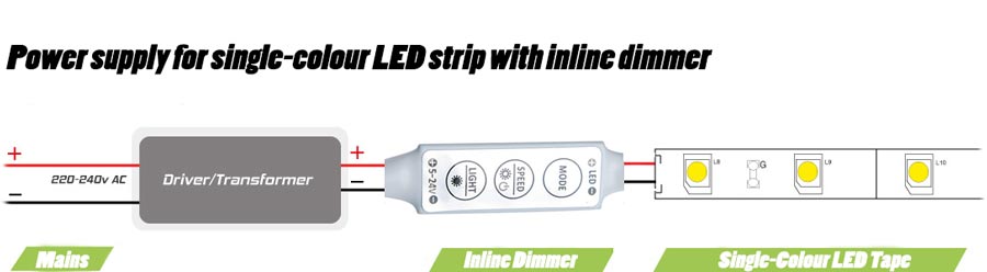 3. How to wire a power supply for dimmable single-colour LED tapes