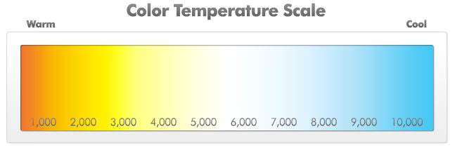 The Kelvin scale is used to measure the colour temperature of shades of white light. The lower the light’s Kelvin value, the warmer the light will be; and the higher the Kelvin value, the cooler the light. (By ‘cool’, we mean that the light will have a more blueish tint.)
