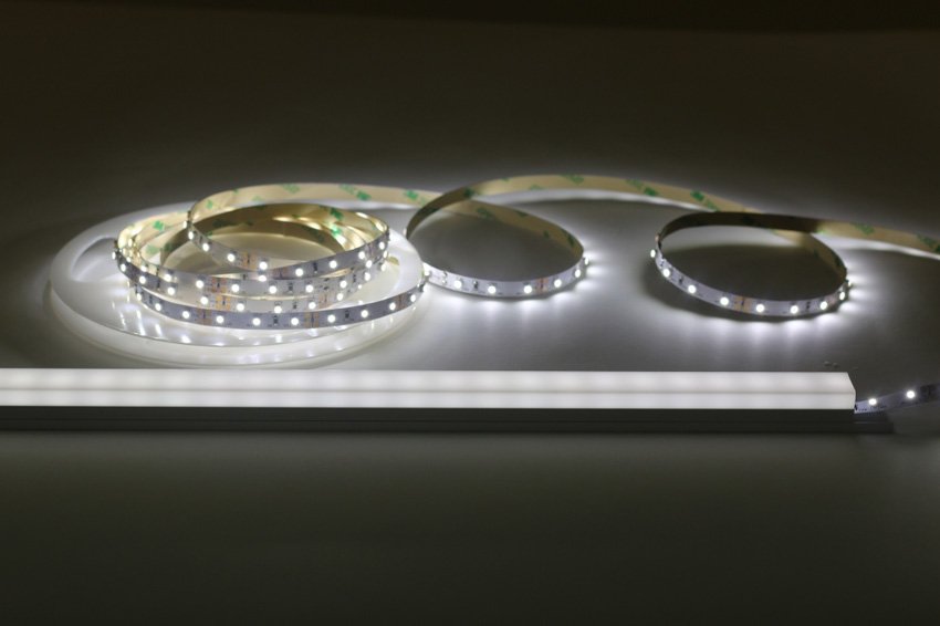 Cool white LED strip lights and an aluminium LED profile