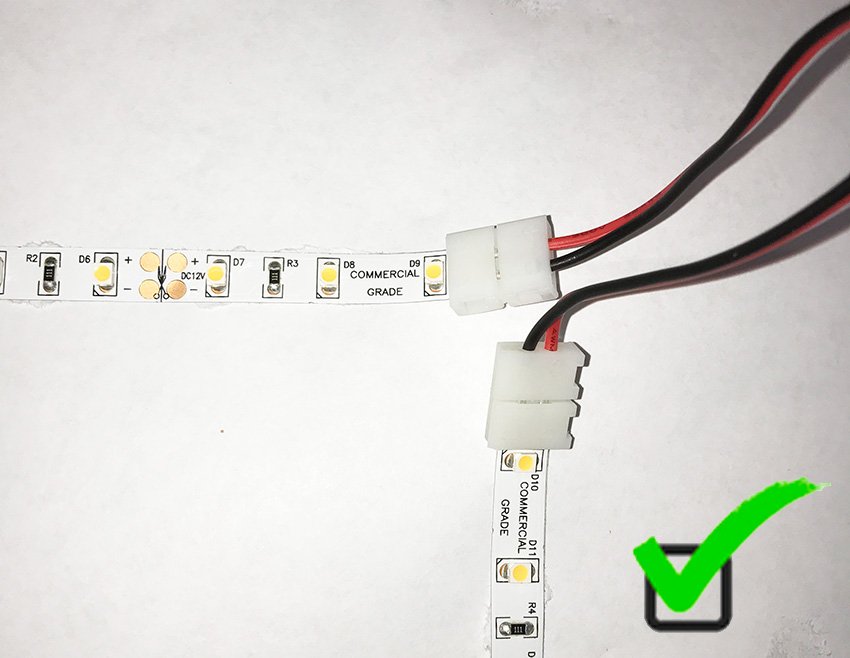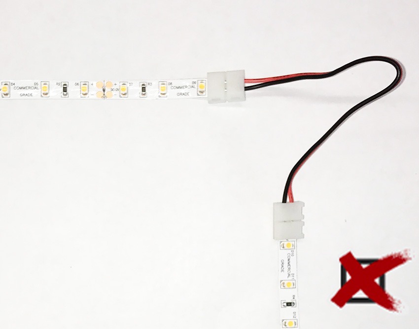 LED clip-on connectors should be positioned close together for an even lighting effect